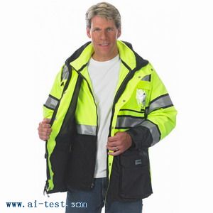 外層為300D滌綸牛津面料,PU涂層;符合ANSI/ISEA107-20043級內膽為熒光搖粒絨,可拆卸單穿;外層和內膽均有2英寸3MScotchlite銀灰色反光條;雙向Y… |
