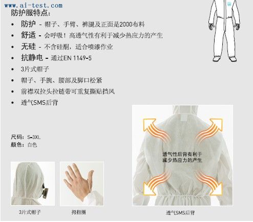| 英國MICROGARD | 白色舒適型有帽連體防護服 | AM514895 | 洽詢 | 32元/套 |