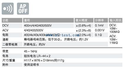 直流電壓: 量程200mV/2V/20V/200V… | 洽詢 | 524 |