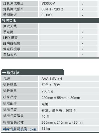 功能特點 :快速測量低壓鈉燈,高壓鈉燈(≤110W),氖燈,節(jié)能燈,無極燈,汞燈等燈具;通斷功能來判斷多種燈具電