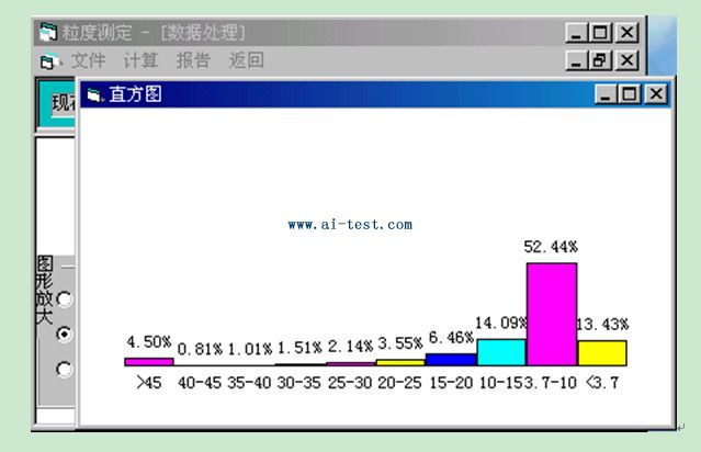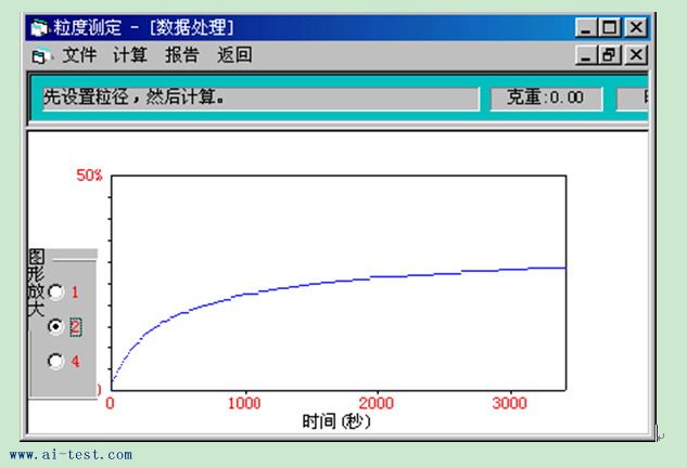 屏幕上,沉降結(jié)束后,可將曲線儲(chǔ)存起來(lái),以便隨時(shí)調(diào)用,然后進(jìn)行顆粒度計(jì)算,計(jì)算結(jié)果可以表和圖形式打印出
