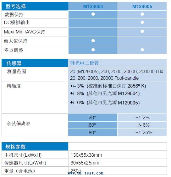 范圍 0.000-1999LUX 2000-19999LUX 20000-50000L… | 洽詢 | 2500 |