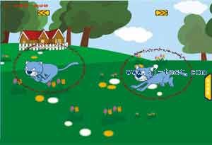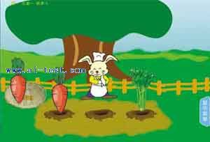 2、拔蘿卜(三級):一只小兔子坐在3個洞前面,洞子里會不停地冒出蘿卜和其他的東西。小朋友幫組小兔子去拔蘿