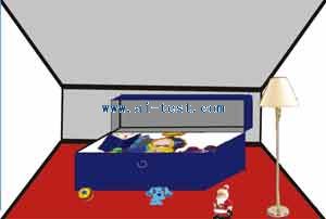 1、開關燈(四級):在美妙的音樂中小朋友眼前出現了漂亮的玩具和巨大的玩具箱。過一段時間后,燈熄滅,然后地