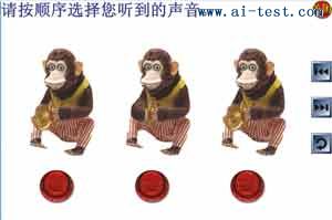 2、聽覺記憶(五級):幾只憨態可掬的小猴子出現在小朋友的面前,天氣悶依次敲打手中的銅鑼,然后小朋友選出剛