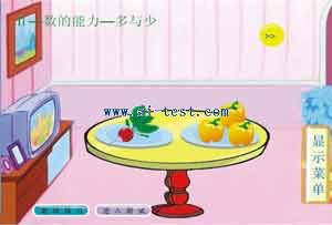 1、多與少(兩級):小朋友在溫馨的房子里,比較每兩種可口新鮮蔬菜的多少。比較多少,可以訓練兒童比較能力,