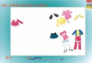 1、相似性推理(三級):很多漂亮的衣服出現在校朋友的面前,游戲要求小朋友挑出與其他衣服款式不同的那件。挑